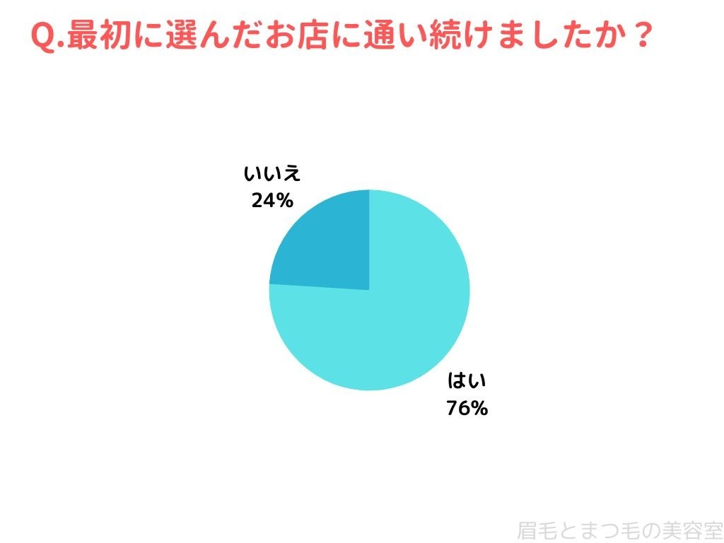最初に選んだ眉毛サロンに通い続けたか聞いたところ「はい(76%)」、「いいえ(24%)」という結果になりました。