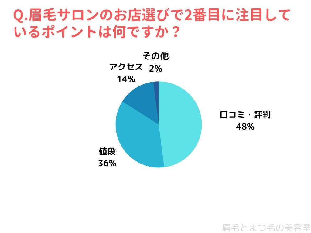 眉毛サロン選びでは「口コミ・評判(48%)」を2番目に重視する人が多い!客側の声も選ぶ上で重要な要素となると推測