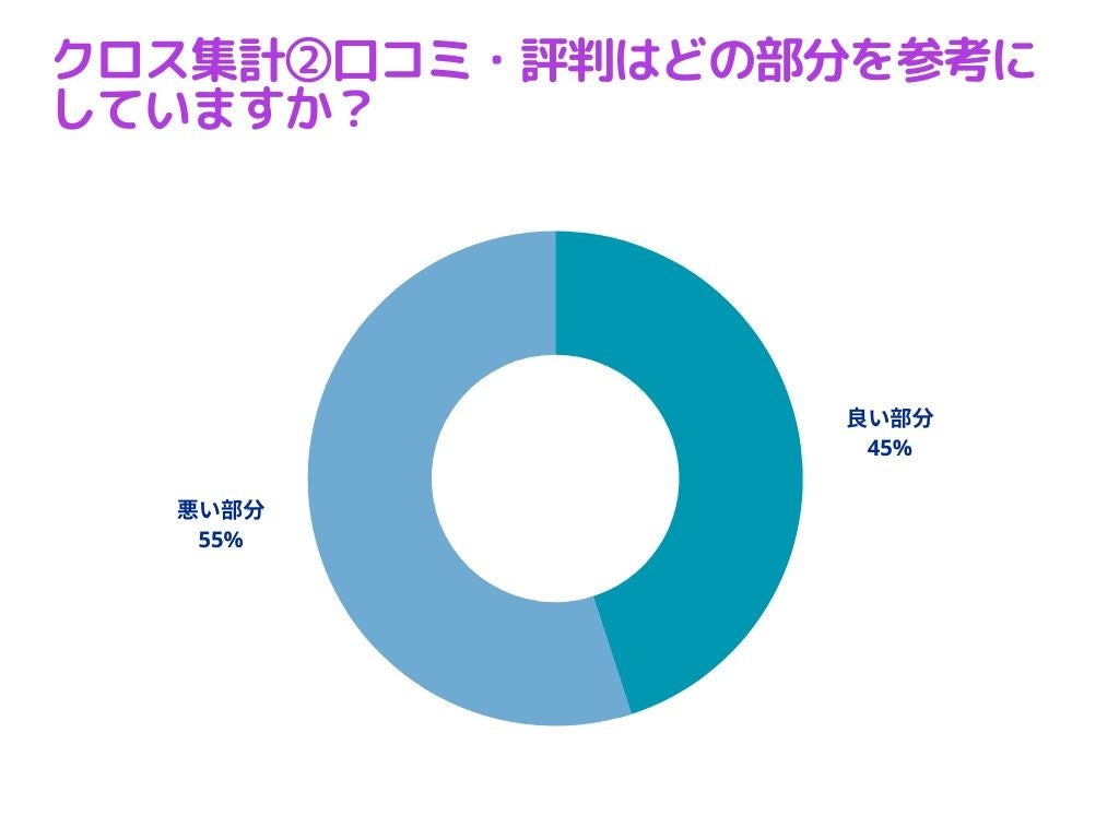 口コミを参考にする部分は、良い部分・悪い部分どちらも半々という結果に!総合的に判断している人も多い模様