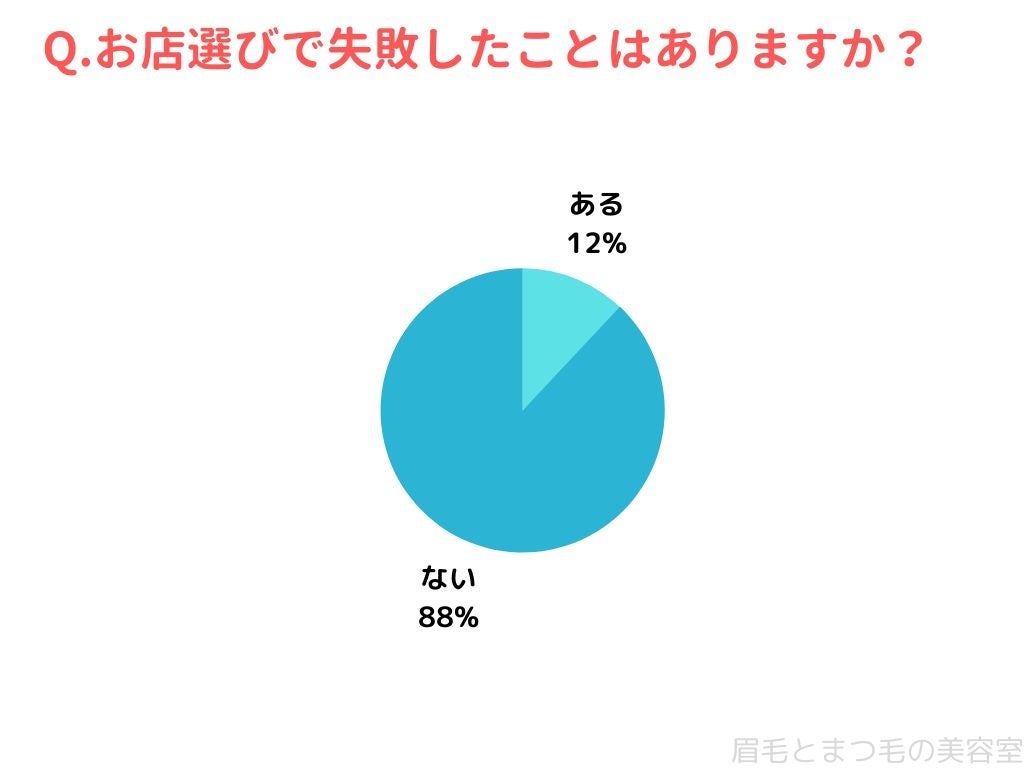 眉毛サロンのお店選びで失敗したことが「ある(12%)」、「ない(88%)」ということが分かりました。