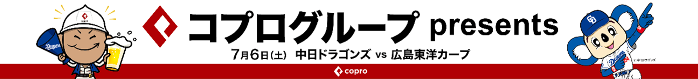 株式会社コプロ・ホールディングス、7月6日(土)中日ドラゴンズvs広島東洋カープ戦冠協賛試合「コプログループpresents」を開催!