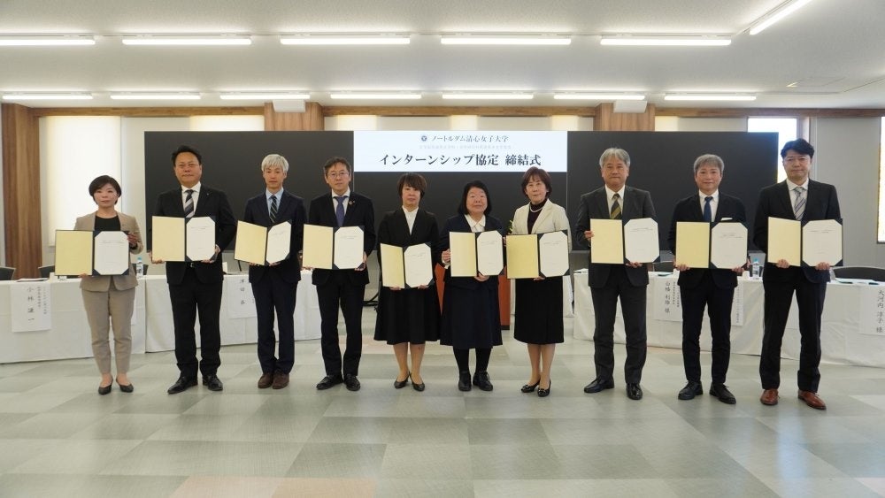 ノートルダム清心女子大学文学部英語英文学科及び大学院文学研究科英語英米文学専攻は同時に2 法人及び7社とインターンシップ協定を締結