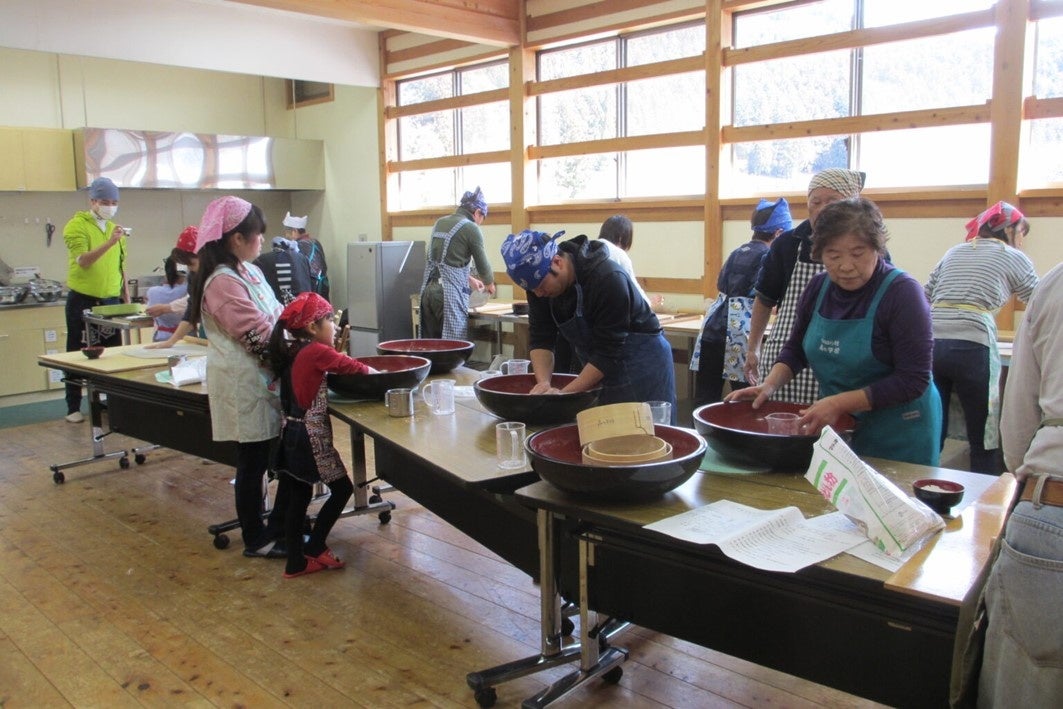 「檜原村観光協会」が運営管理している「檜原村地域交流センター」2階研修室では、地元の方々が講師となり、檜原村ならではのパン、そば、うどん、おやき、こんにゃく、みそ、ひのはら和紙づくりを体験できる「森の学校」を実施していて、人気を集めています。