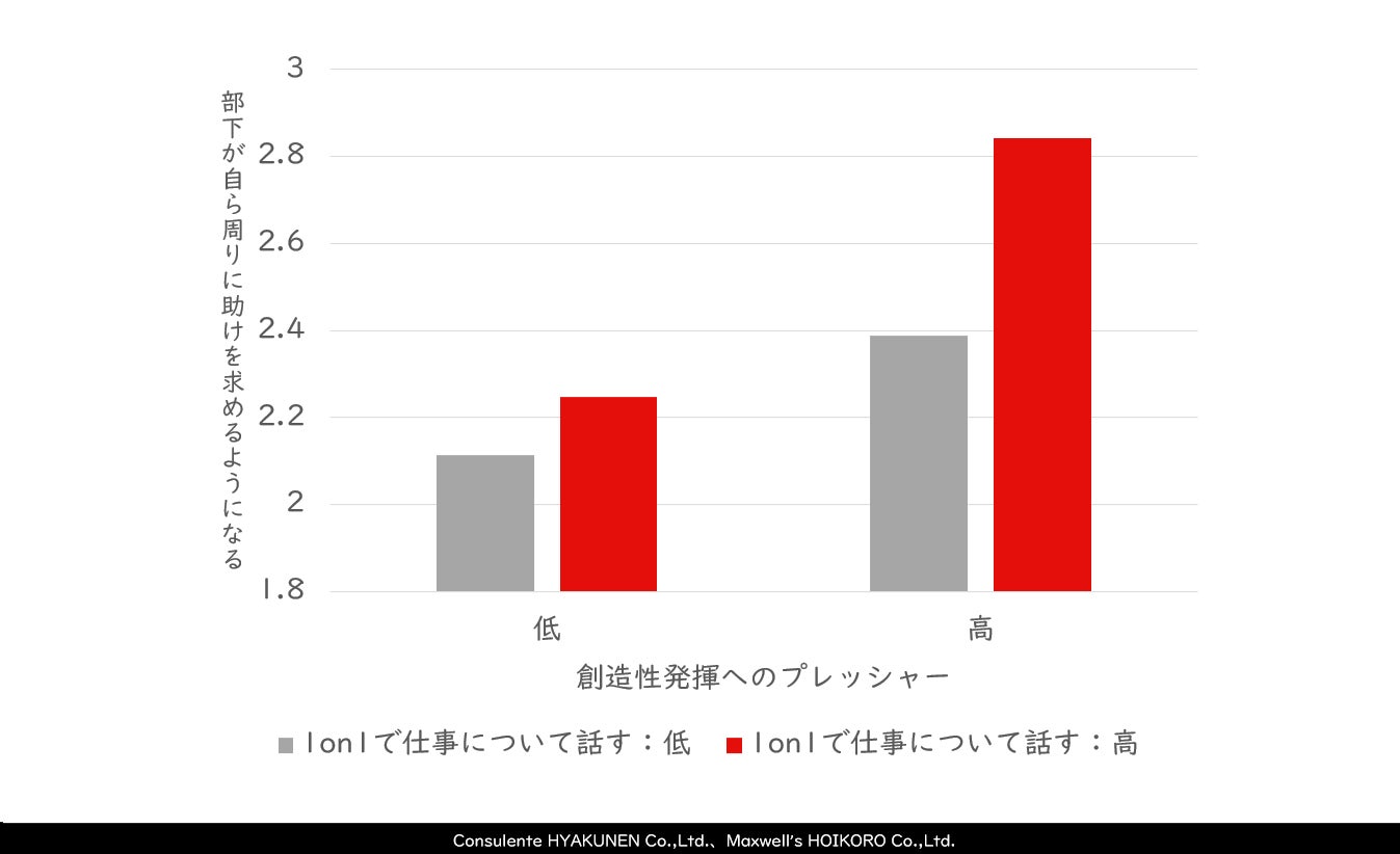 さらなる解析を通して明らかになったのは、むしろ、「1on1を通じて、部下に対して強固なプレッシャーをかけることで、部下が周りの助けを求めざるを得なくなったから」というものでした。