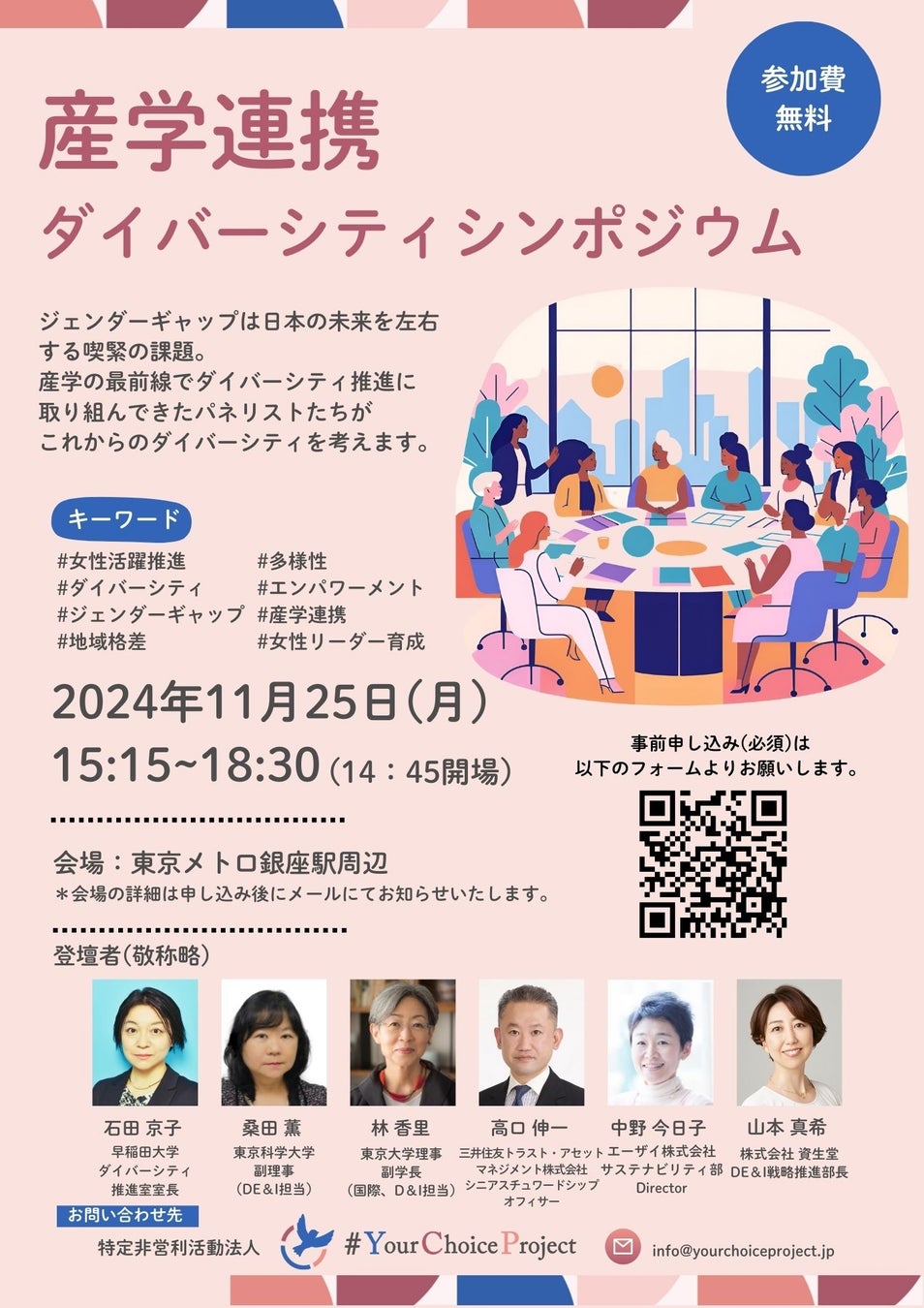 教育分野のジェンダーギャップ解消に取り組むNPO法人#YourChoiceProject、産学連携ダイバーシティシンポジウムを開催。大学とダイバーシティ先進企業がジェンダーギャップについて考えます。