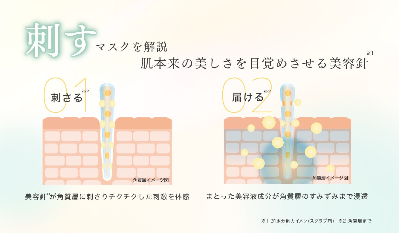 1:チクチクした刺激を体感※1 約30万本※2の美容針※3を配合したニードルマスク