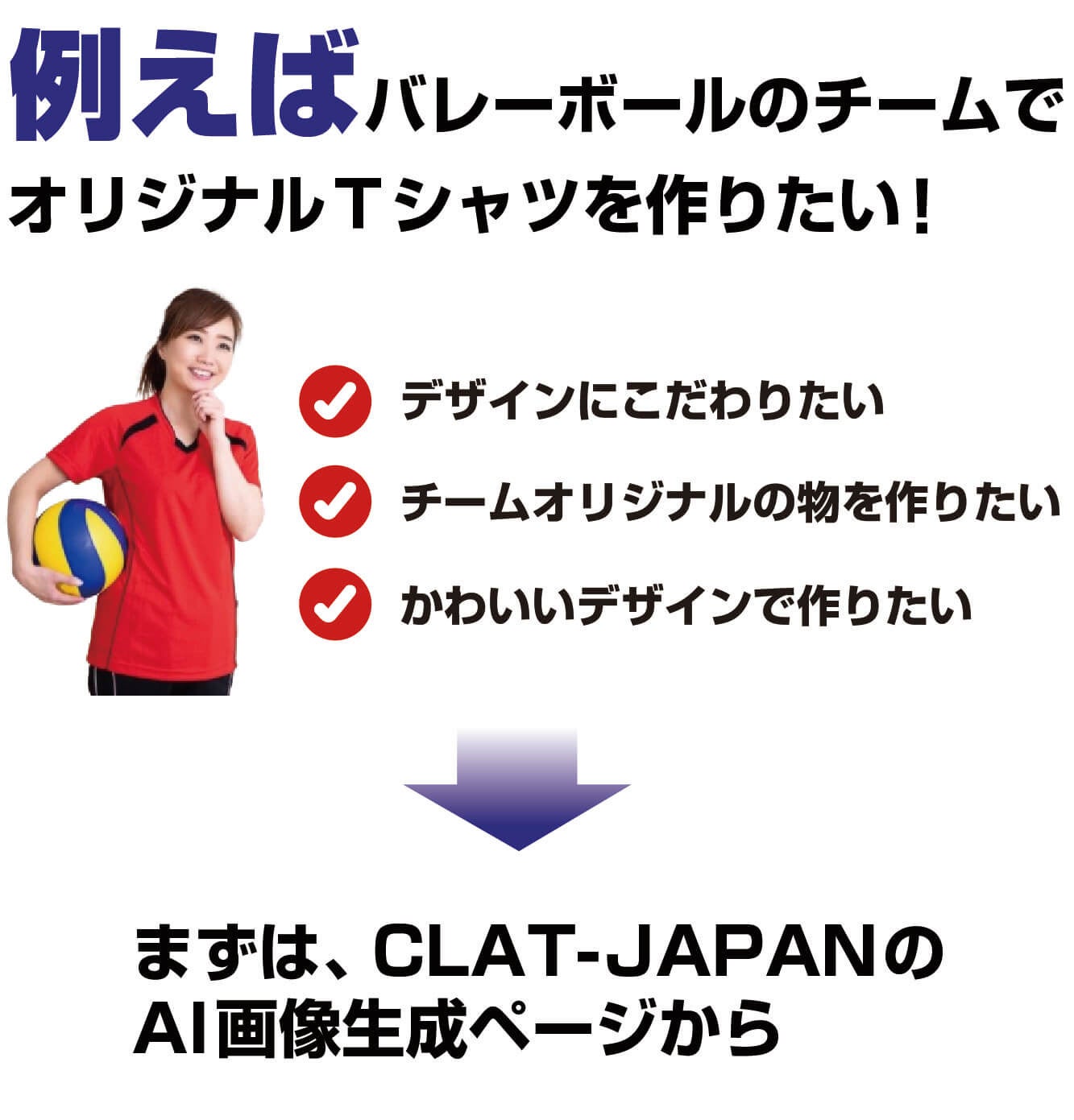 株式会社フォーカス(本社:山梨県甲斐市、代表取締役:常松 憲太)が運営するオリジナルグッズ制作サイト「CLAT-JAPAN(読み:クラティージャパン)以下、クラティージャパンにおいて、「AI画像生成」サービスがスタートしました。テキストを入力して気軽にデザインを生成できるため、オリジナルグッズ製作では必須のデザイン作成を「誰もがいつでも簡単に」楽しめるようになりました。今回は、「AI画像生成サービス」を活用してオリジナルウェアを製作する方法をご紹介します。なお、使用料金は一切かかりません。この機会に是非お役立てください。