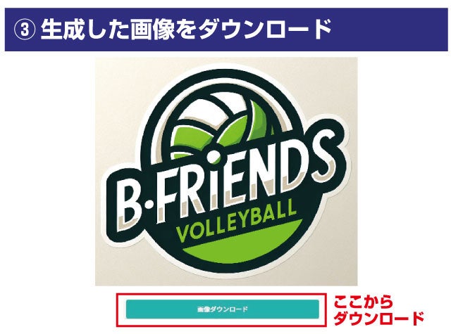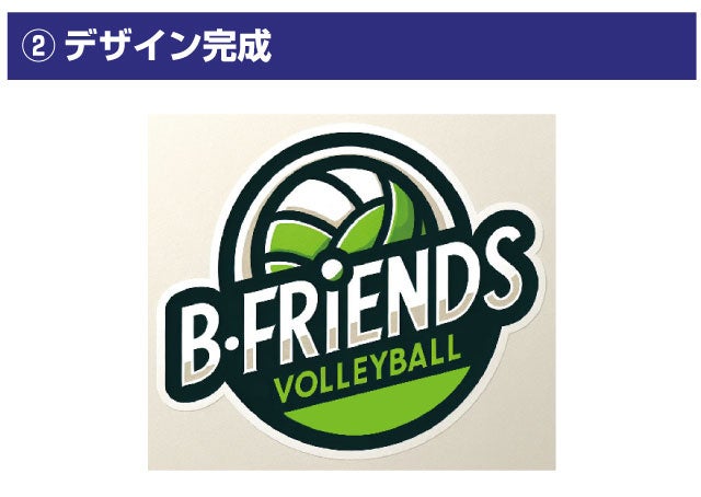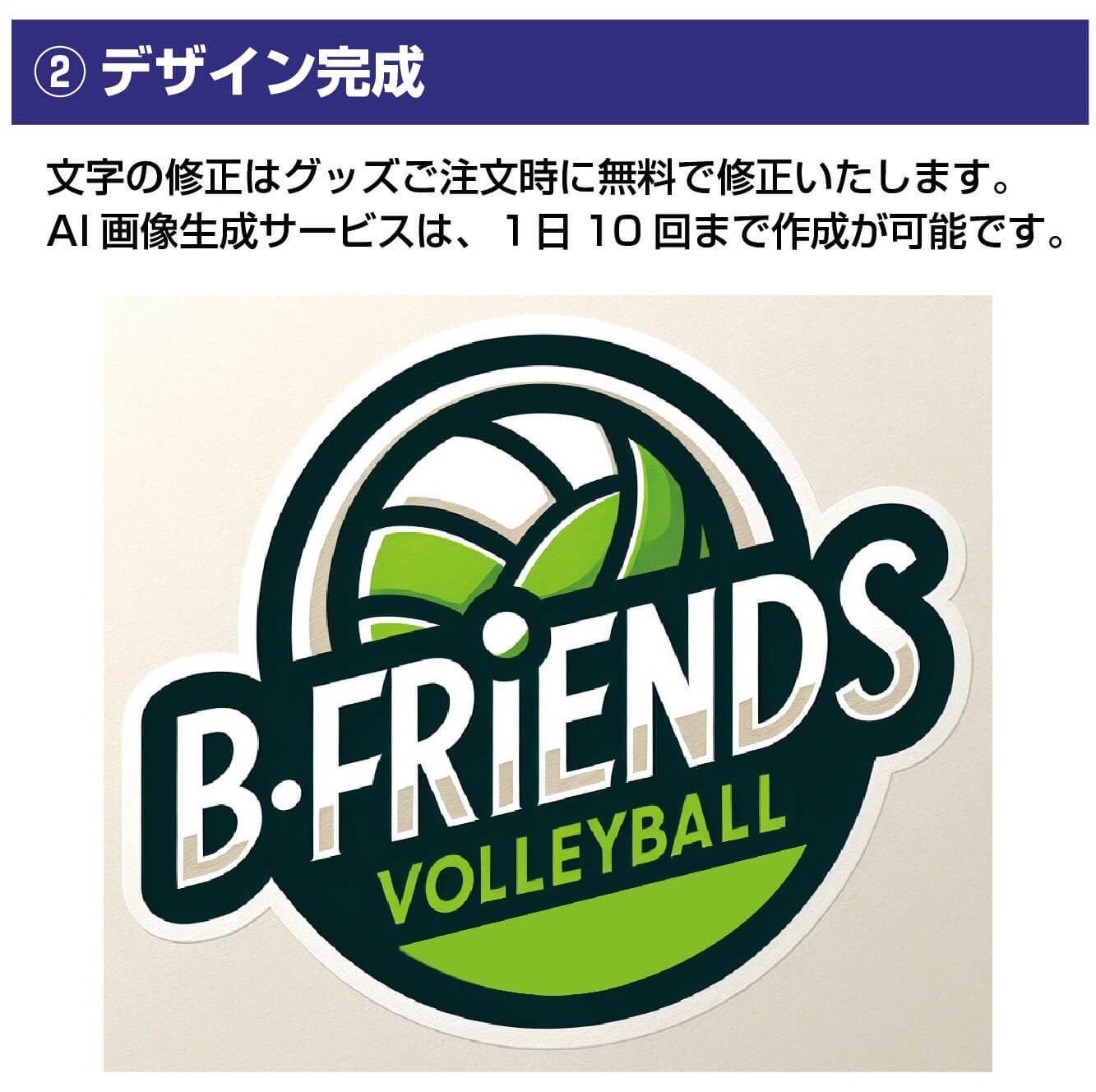 ※左画像は実際にテキスト入力をして生成した一例です。テキスト「B-FRIENDS VOLLYBALL チームロゴ 緑 爽やか」
