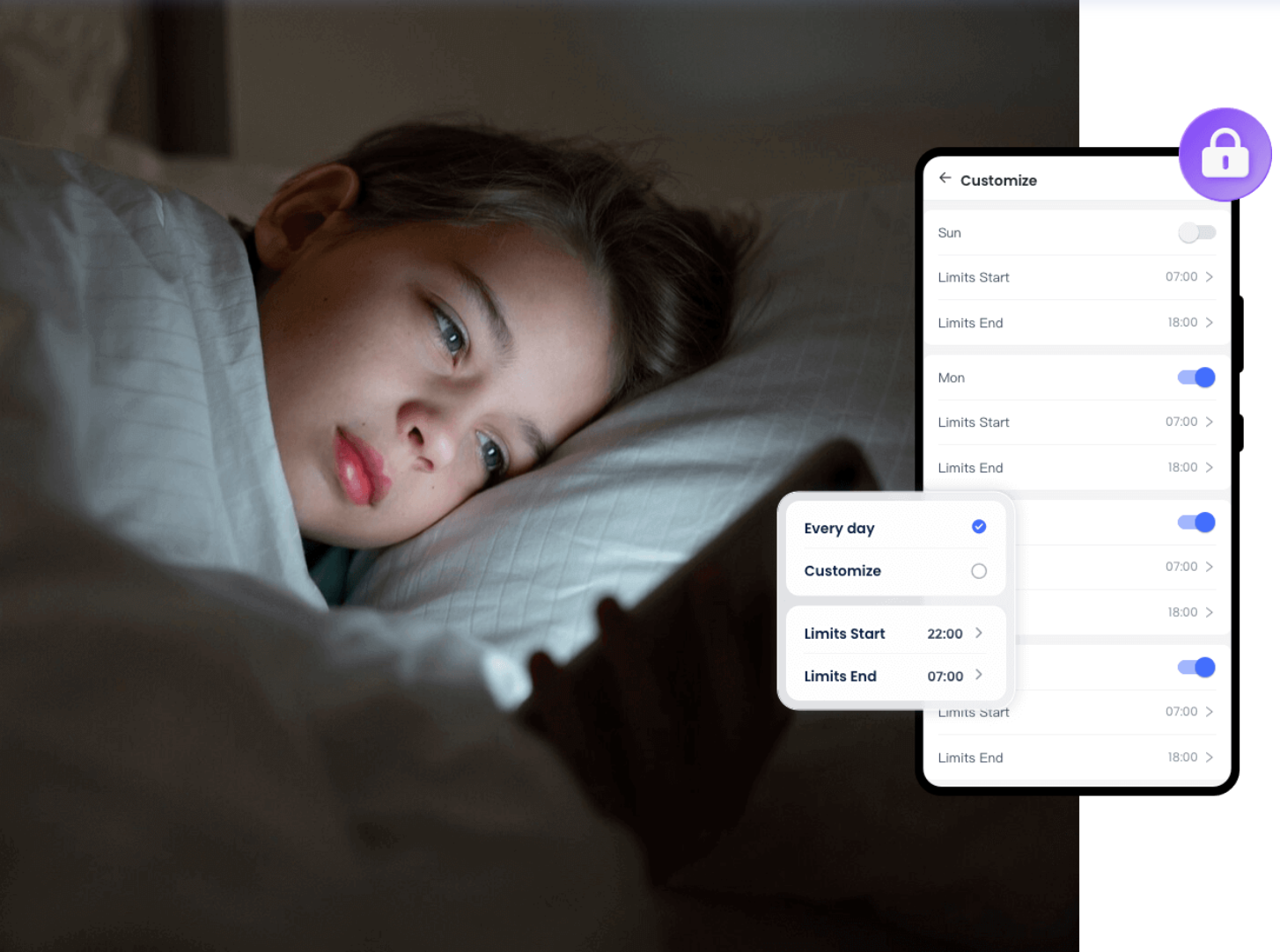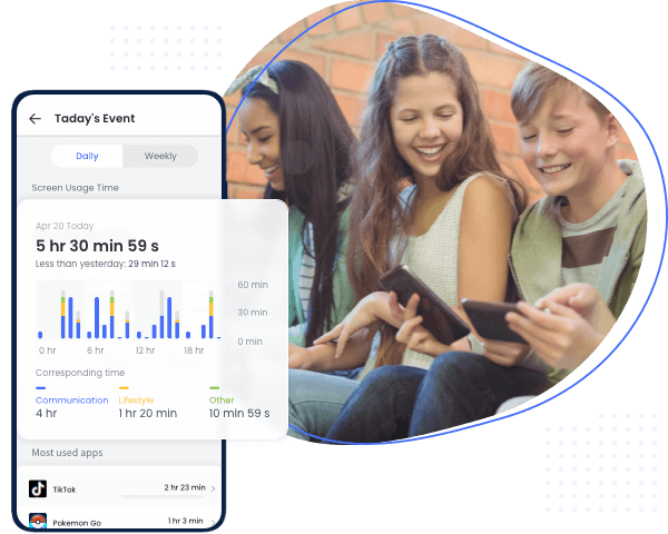 子供のデバイスの日常および週間の使用状況を監視し、画面の使用時間、最も使用されたアプリ、通知の数、および携帯データの使用量の統計を含みます。
