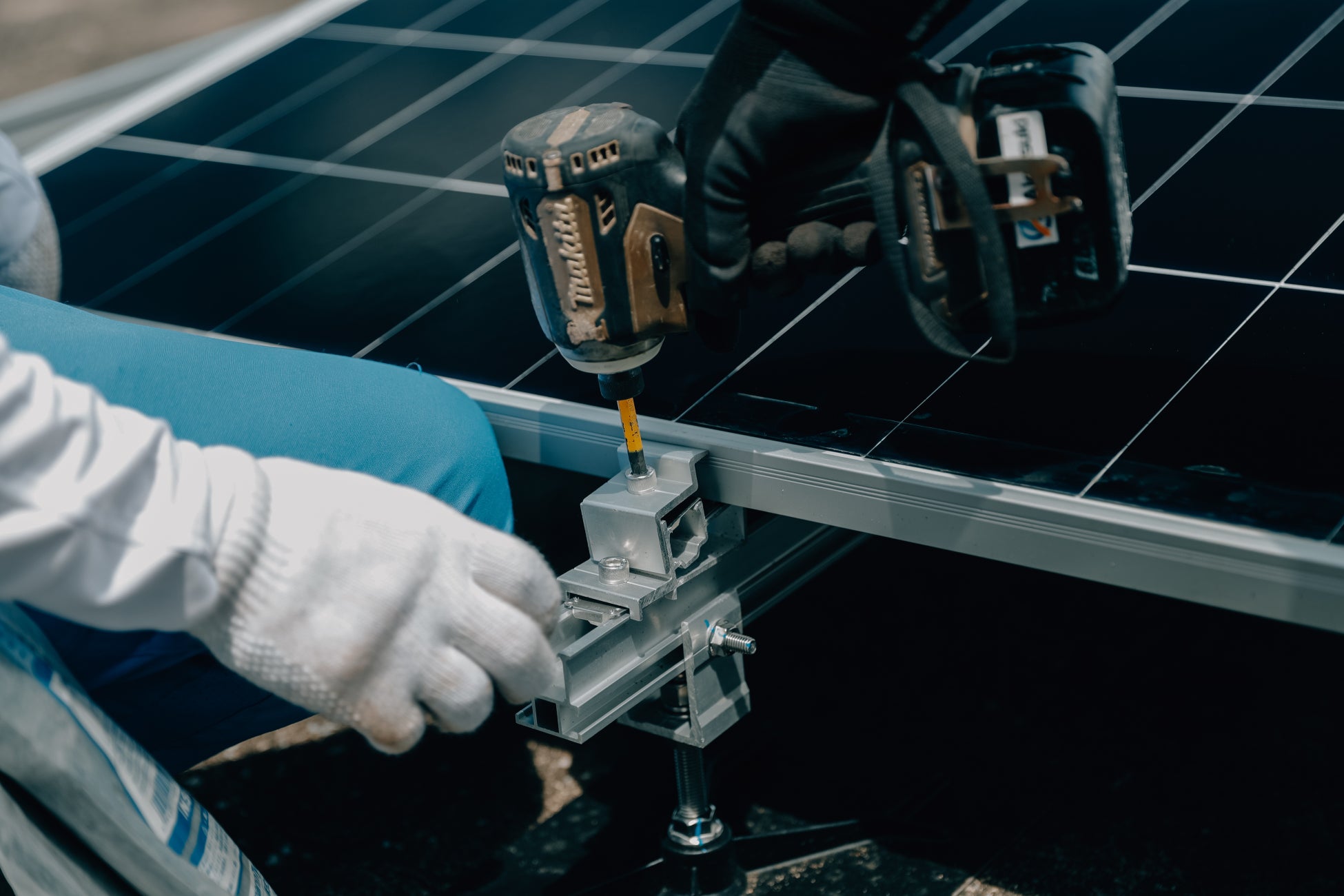 高精度アルミフレーム+スタッドボルトで高さを無段階調整。フレキシブルレールで角度も自在。勾配・段差・高低差が異なる屋根でも、現場で対応できる。 |