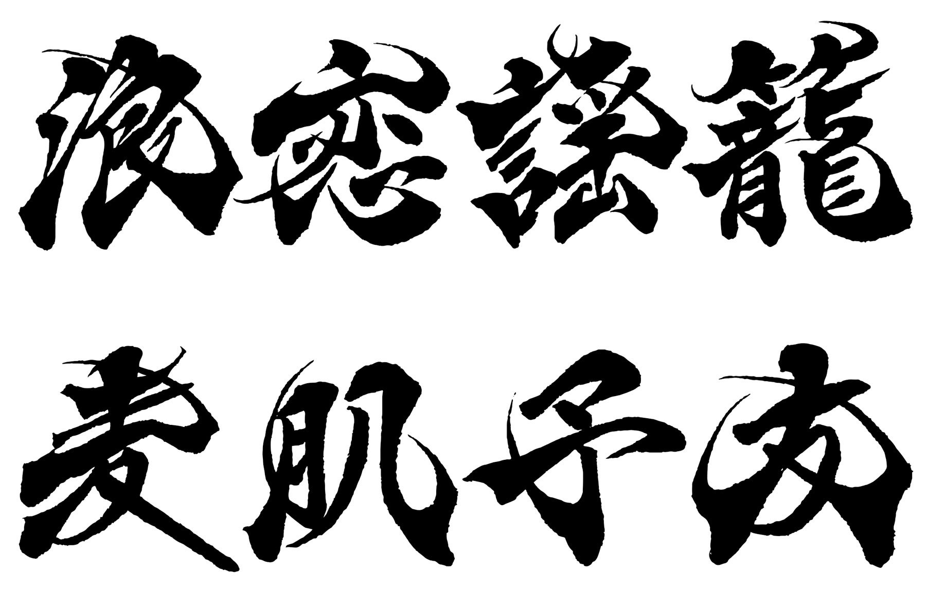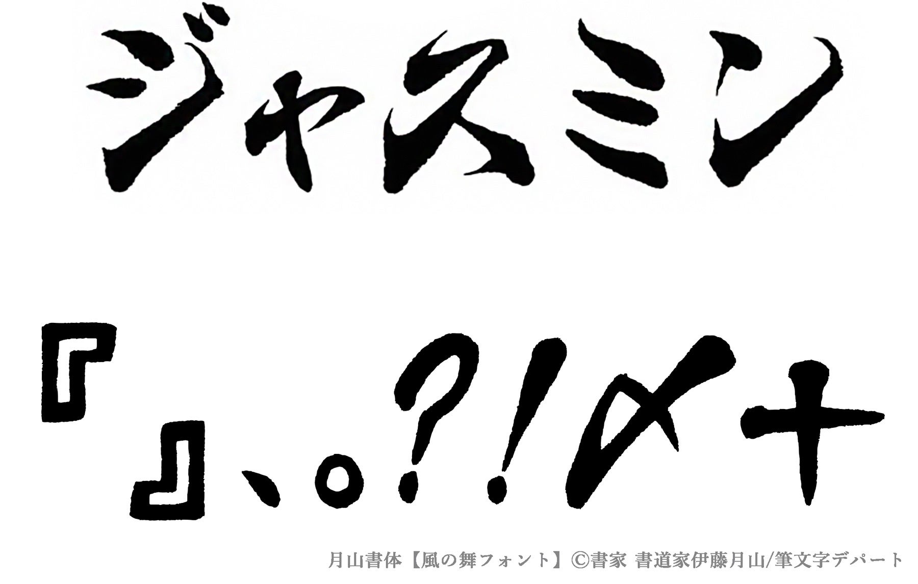 風の舞フォントの書体は書家/書道家 伊藤月山(白水)が独自に考案した構成法「風舞書®」を応用した、完全オリジナルの個性的な毛筆書体です。また漢字の偏(へん)や旁(つくり)の使い回しは一切せず1文字ずつ手書きで丁寧に書き上げました。