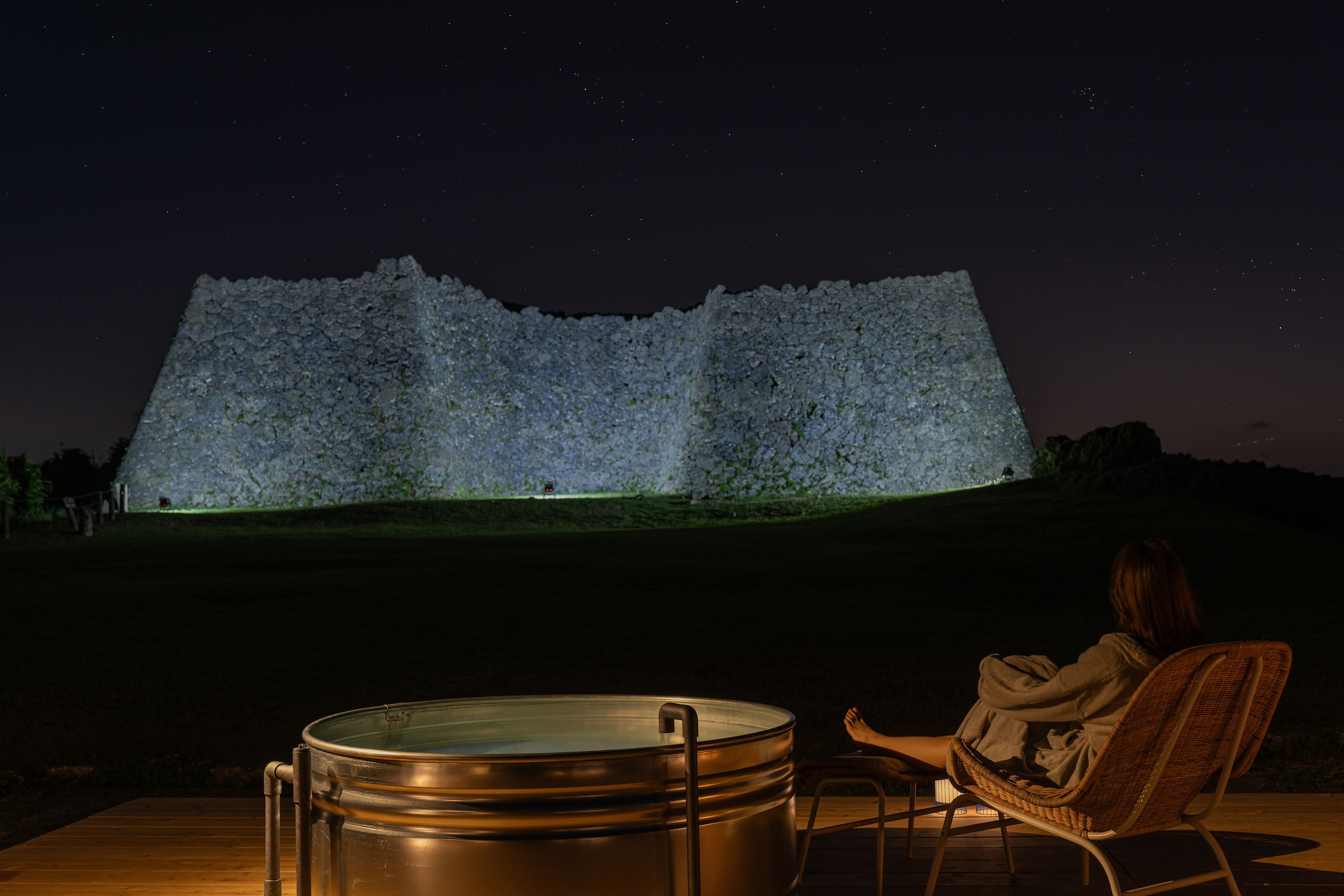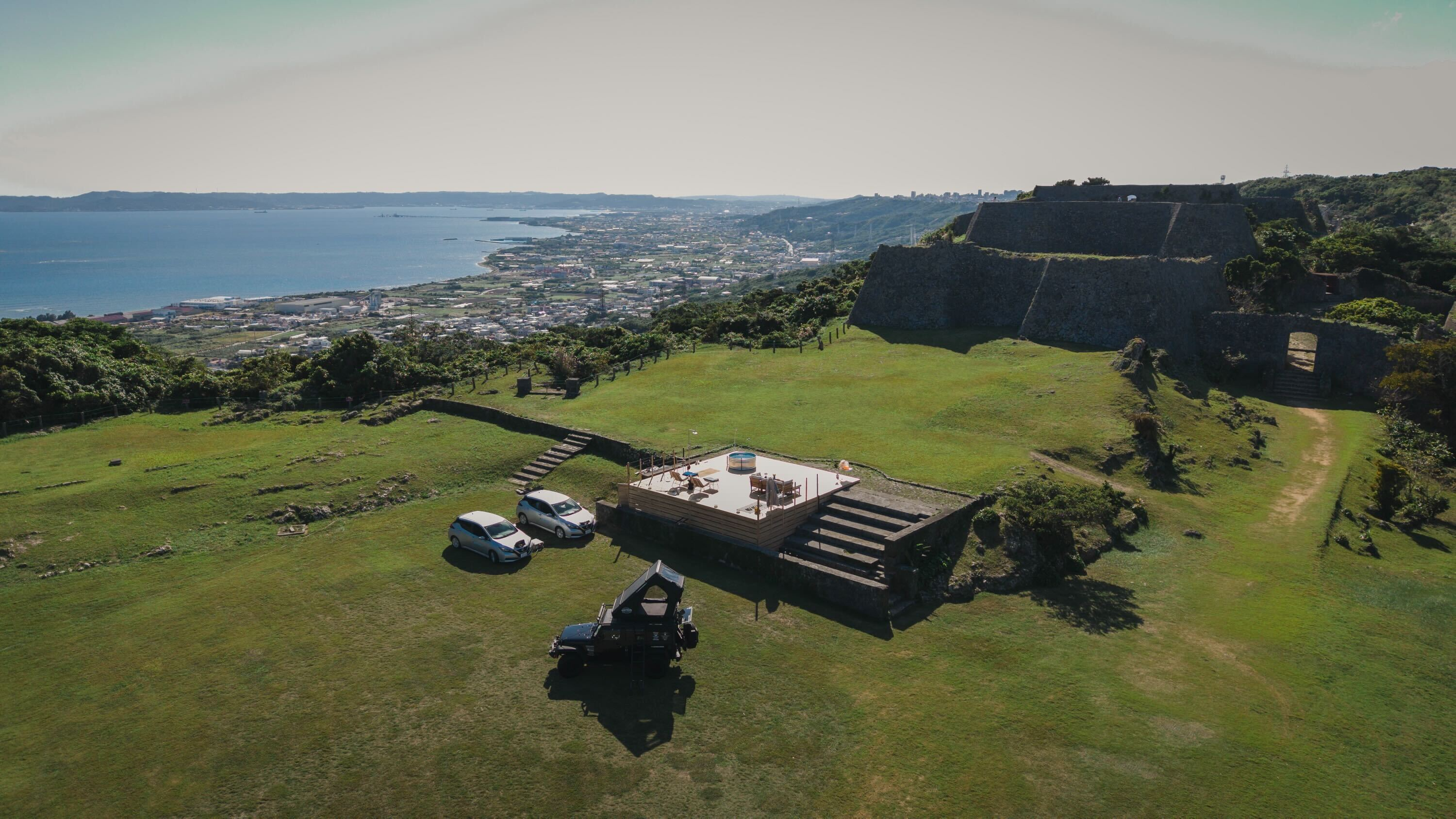 インフラ開発不要で、世界遺産にポップアップリゾートを構築。沖縄県中城村の中城城跡で実証実験開始。無料宿泊体験モニターを募集。