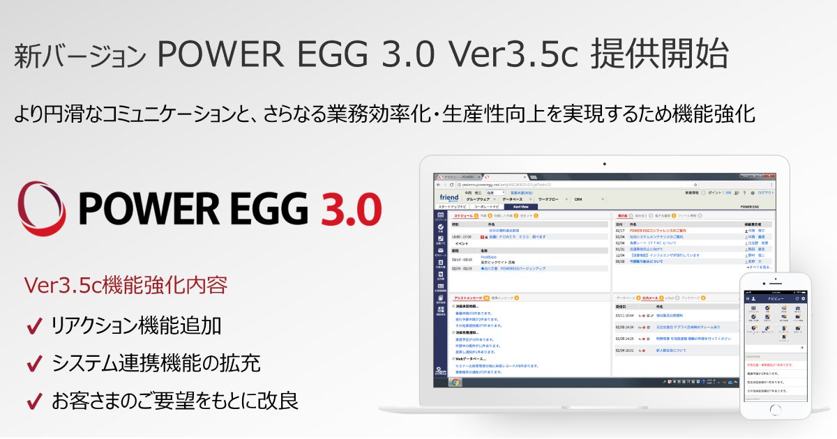 DXソリューション「POWER EGG」、より円滑なコミュニケーションと、さらなる業務効率化・生産性向上を実現するため機能強化