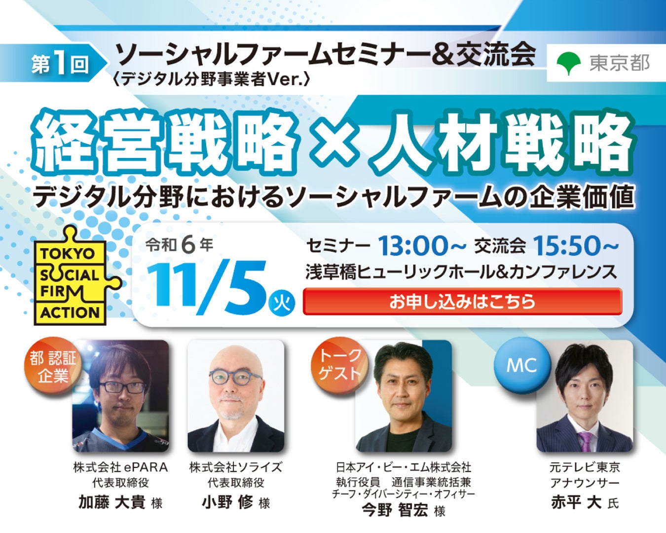 【東京都主催】ソーシャルファームセミナー&交流会(デジタル分野事業者Ver.)を開催!