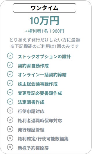 株主総会の開催に必要な書類と、変更登記に必要な書類一式が自動で作成されるようになりました!それに伴い、発行頻度が低い企業様やとりあえず発行しておきたい場合に便利な「ワンタイムプラン」を開始しました!