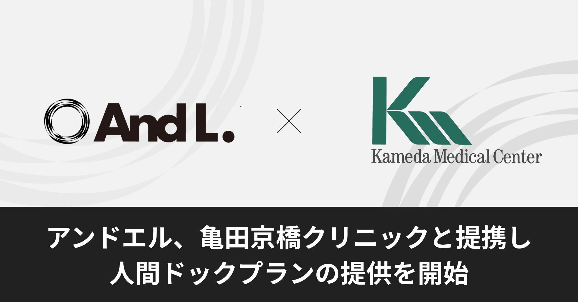 アンドエル株式会社(本社:東京都港区、代表取締役:古橋智史、以降「アンドエル」)は、医療法人鉄蕉会 亀田京橋クリニック(所在地:東京都中央区、院長:岸本 誠司、以降「亀田京橋クリニック」)と提携し、企業の健康経営を支援し、予防を目的とした人間ドックプランの開発・提供を開始しました。