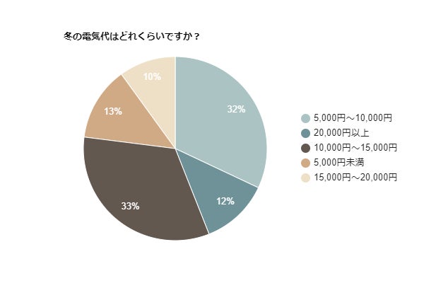 冬の電気代は「10,000円~15,000円」かかっているご家庭が約3割