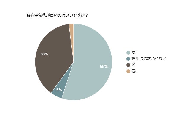 次点で「冬」が38%という結果となりました。冷暖房を使う季節は電気代が上がってしまう傾向であることが推測されます。