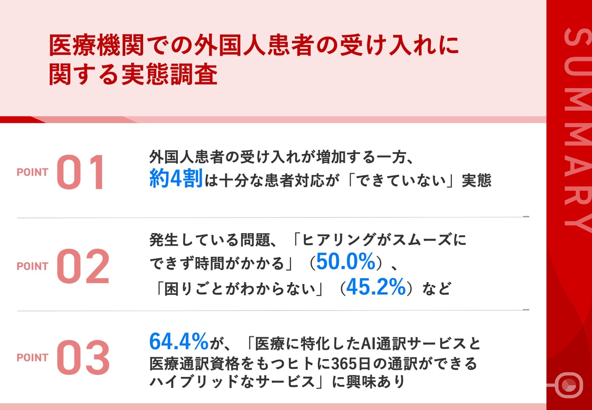 01|外国人患者の受け入れが増加する一方、約4割は十分な患者対応が「できていない」実態