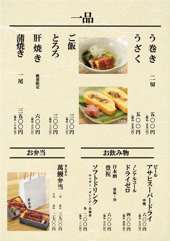 萬鰻亭の美味しいうなぎを是非お愉しみください。