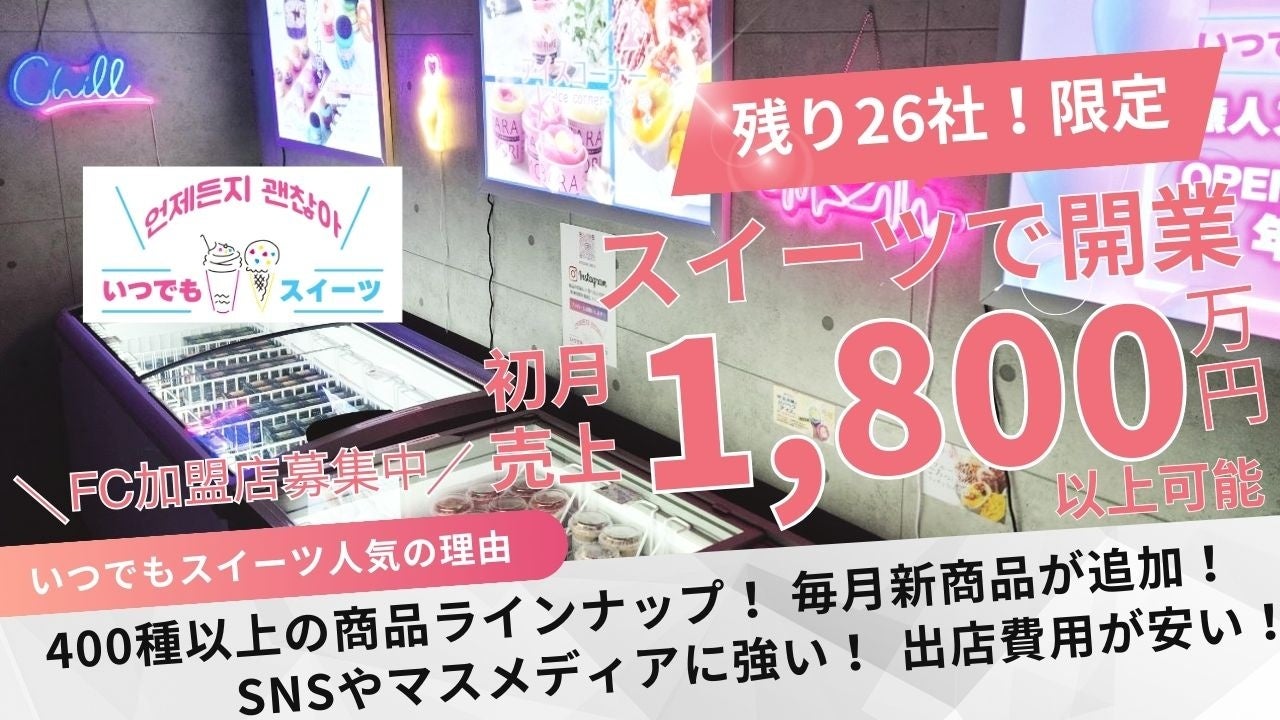 24時間のスイーツ無人販売【いつでもスイーツ】51店舗突破!FC契約枠は残り26店舗!年内で直営店50店舗及びFC 50店舗▶合計100店舗を出店計画中!!