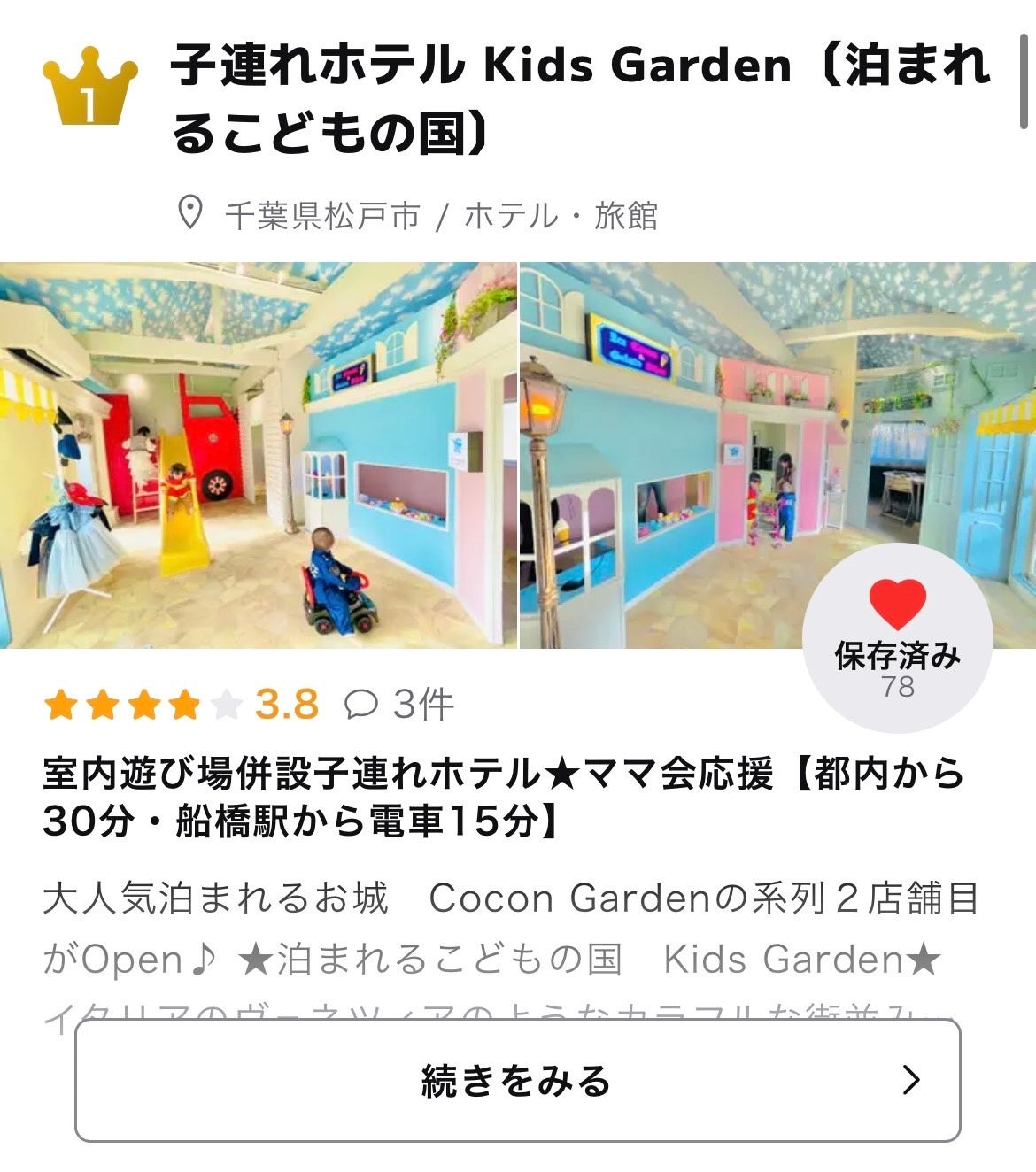 子連れホテル Kids Gardenは、子どもとお出かけ情報サイトとして有名な『いこーよ』にて