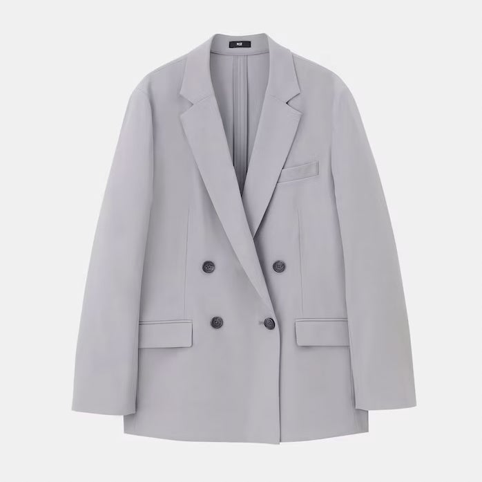 「リネンブレンドダブルジャケット」は、同素材のパンツとセットアップで着用できる毎年人気のジャケットです。今年はビッグシルエットのトレンドを受けて、やや長めの着丈とリラックス感のあるシルエットに。下襟のデザインを直線的にシャープにすることで、きちんと感のあるマニッシュな大人コーデを叶えます。また、今年はボタンのカラーも生地と同系色に変更。どんなスタイリングにも馴染むようにアップデートしました。