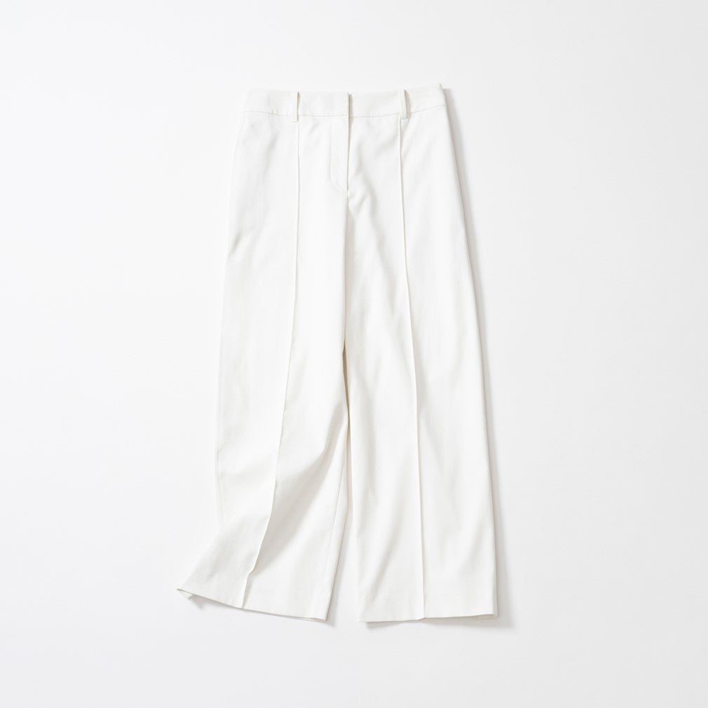 ■クロップド丈でどんなシューズとも相性抜群。ピンタック入りの美脚ワイドパンツ