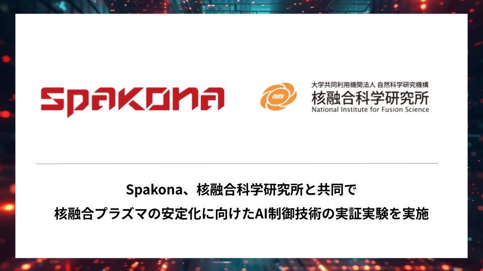 株式会社Spakona、核融合科学研究所と共同で核融合プラズマの安定化に向けたAI制御技術の実証実験を実施