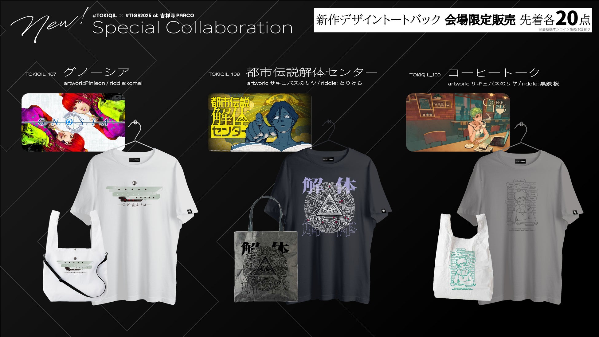 TOKYO INDIE GAMES SUMMIT 2025当日は、吉祥寺PARCO1階と屋上にて、コラボ商品の展示を行います。また現地先行販売の、「解けないと買えないトートバック」も各種20枚限定でご用意。ぜひお立ち寄りください。
