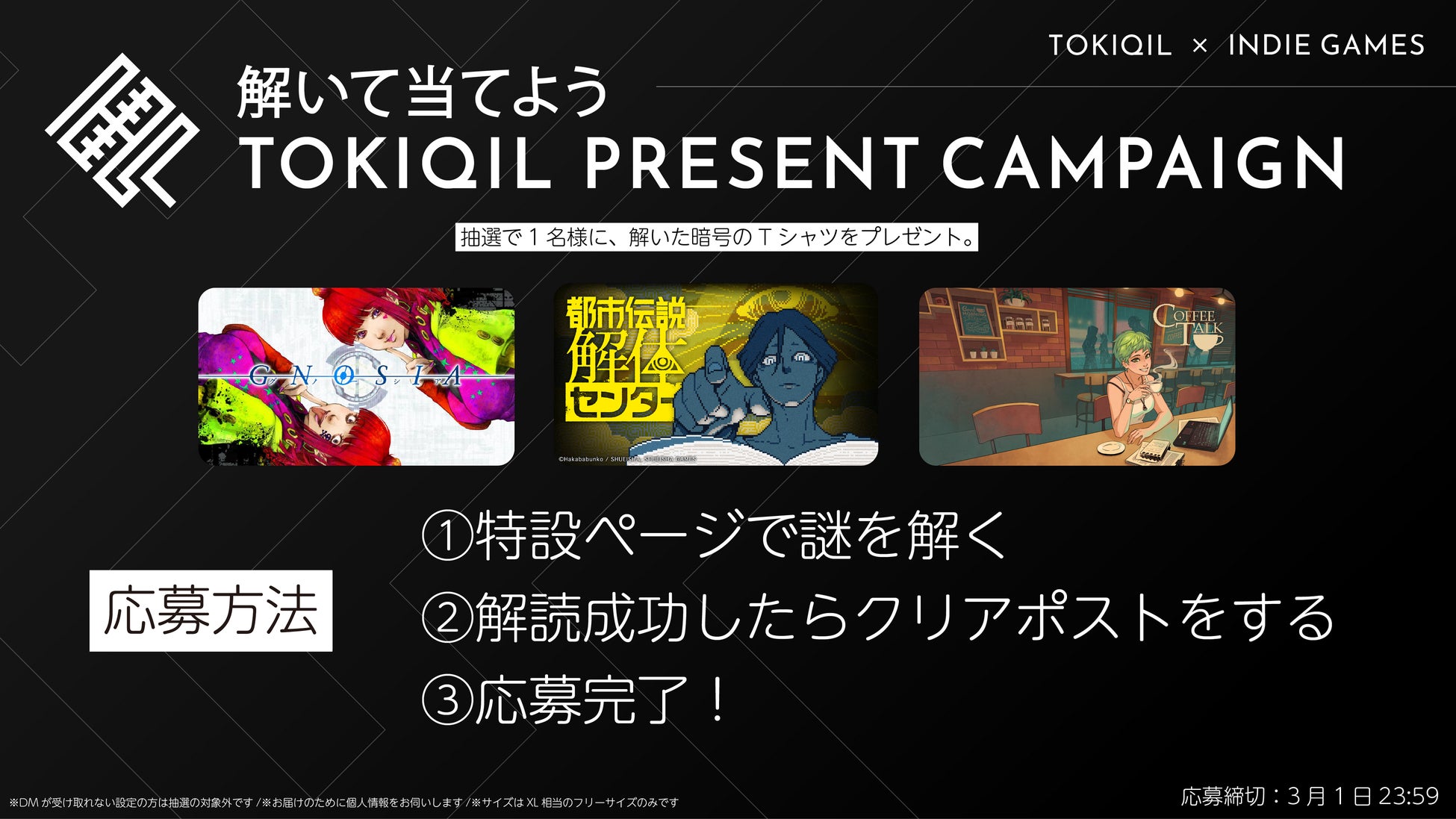 暗号専門のアパレルブランド「トキキル」が今回コラボするゲームタイトルは、今話題のインディーゲーム『グノーシア』『都市伝説解体センター』『コーヒートーク』の3種類です。