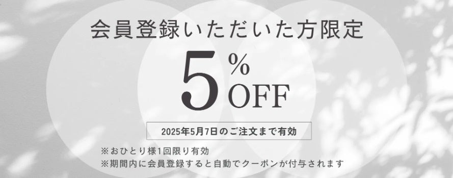 現在は3%のポイントバックに加えて「OPEN記念キャンペーン」として会員登録をしていただいた皆様に5%OFFクーポンを発行いたしております。