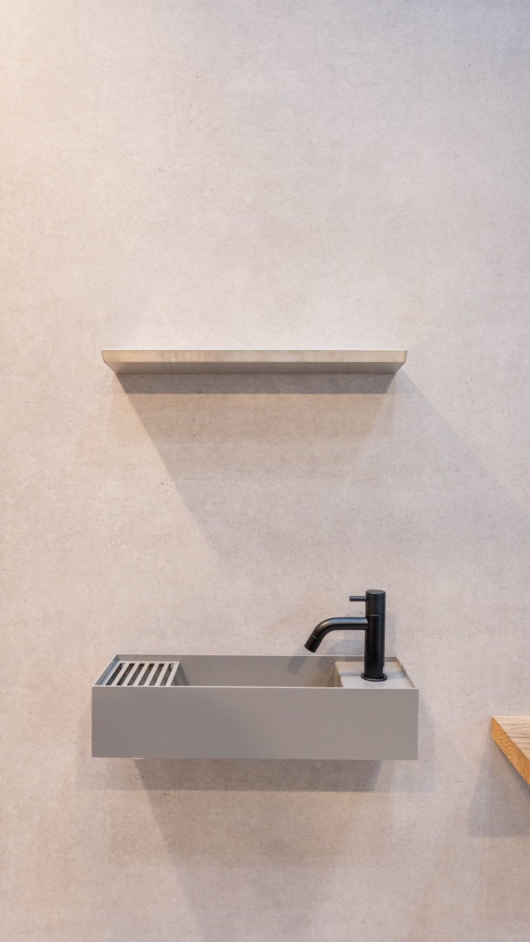 ステンレス由来の3mmという極薄のシャープなエッジは、有効開口を広くとることが可能なため、限られた空間での手洗いニーズに応えます。