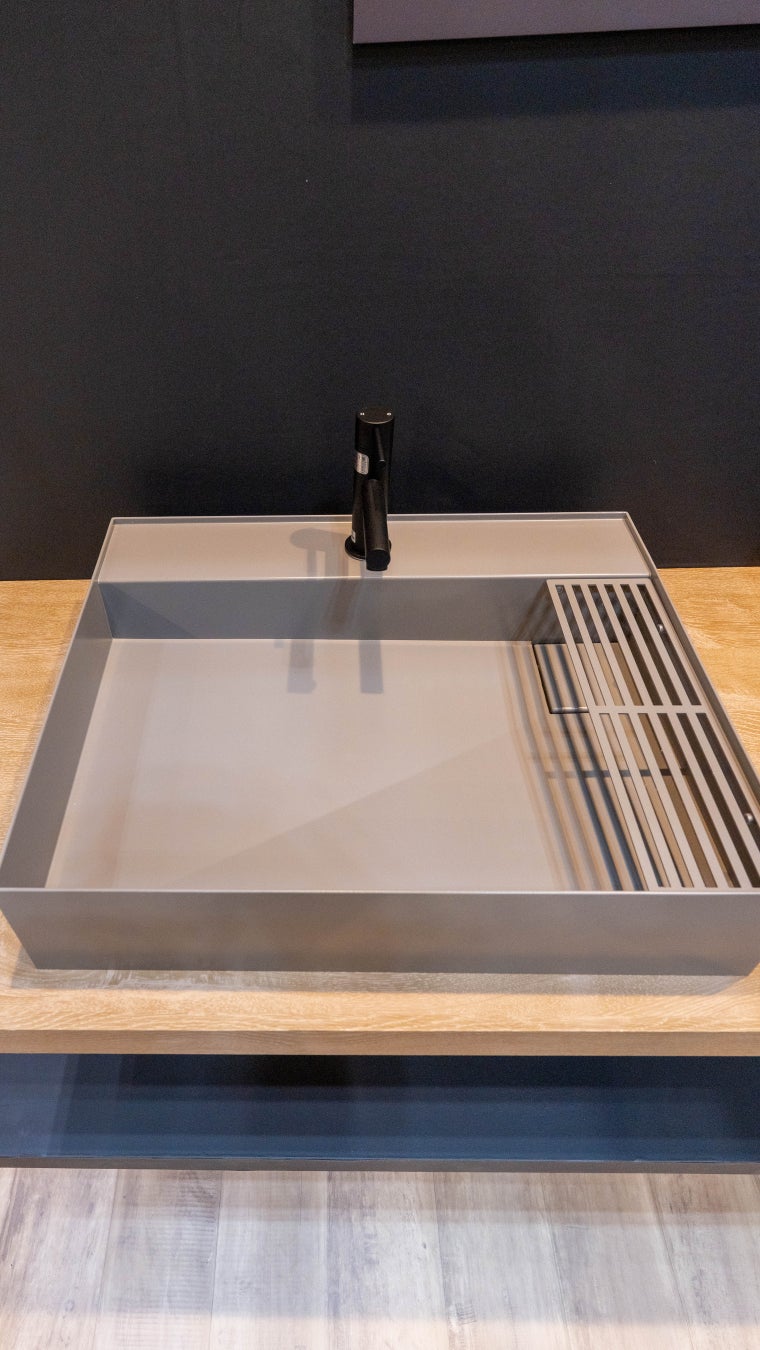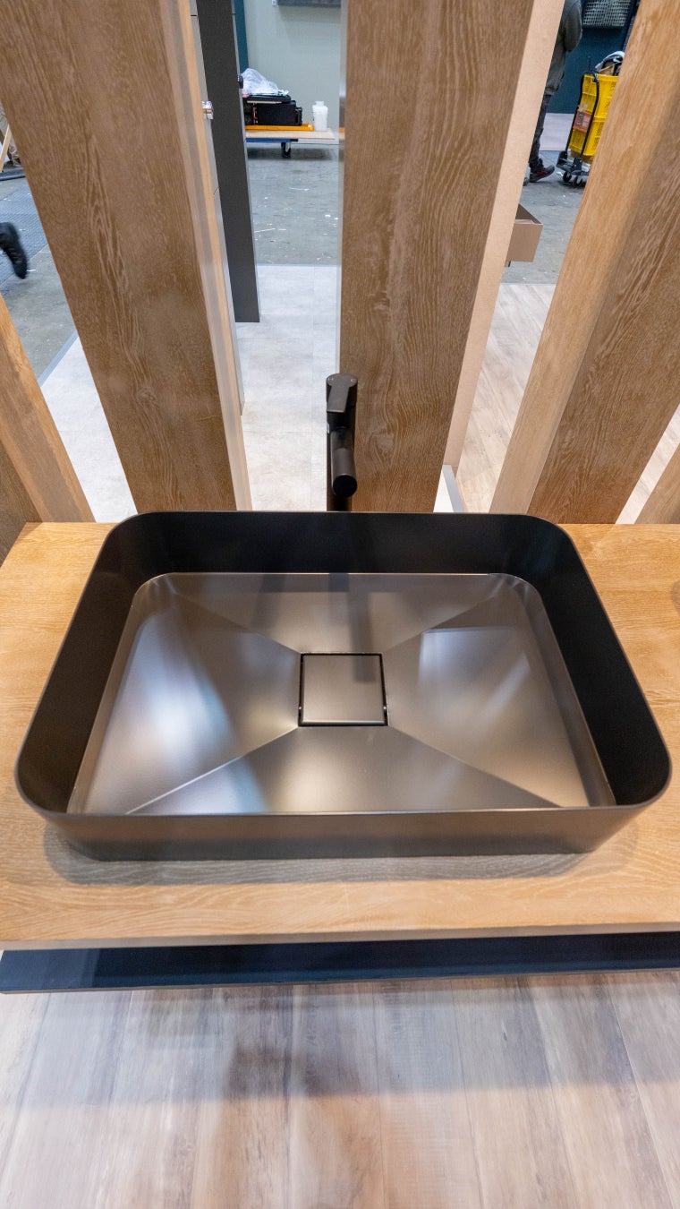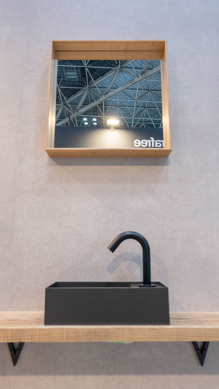 洗面ボウルRenetta(リニエッタ)と、展示会直前に発表された iFデザイン賞2025を受賞した洗面ボウルNuar(ヌアール)は特に建築デザインのプロフェッショナルの方から高い評価をいただきました。