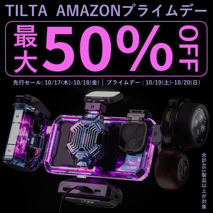 中国・深センで2010年に設立され、カメラアクセサリーや撮影用機材などを提供するメーカーTILTA JAPAN株式会社(本社:Shenzhen Tilta Technology Co. Ltd.、代表取締役CEO:曾文凭)はAmazonにて、先行セール:2024年10月17日(木)00:00〜10月20日(日)23:59まで開催される「Amazon プライムデー」に参加します。期間中は、最大50%オフのセール価格で販売いたします。