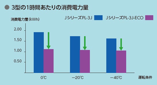※3 ECOタイプ(PL-4J-ECO)と現行モデル(PL-4J)の0℃運転時における消費電力量を比較