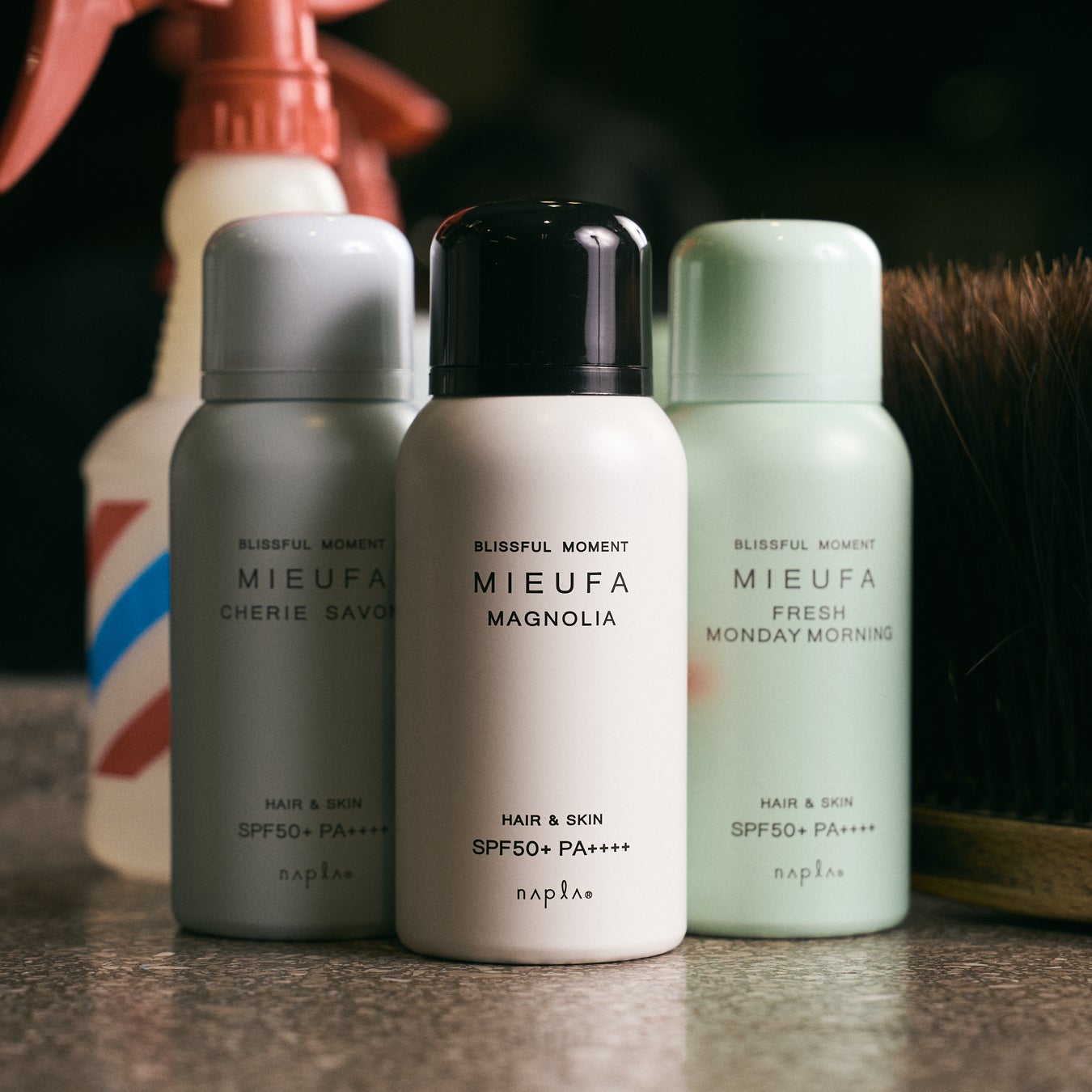 秋祭り期間中、ご希望のすべてのお客様に施術後に髪にかけるヘアフレグランスをサービスいたします。紫外線防止にもなり、髪にも肌にも使えるミーファフレグランスUVスプレーを3種類ご用意し、お好きな香りをお選びいただけます。