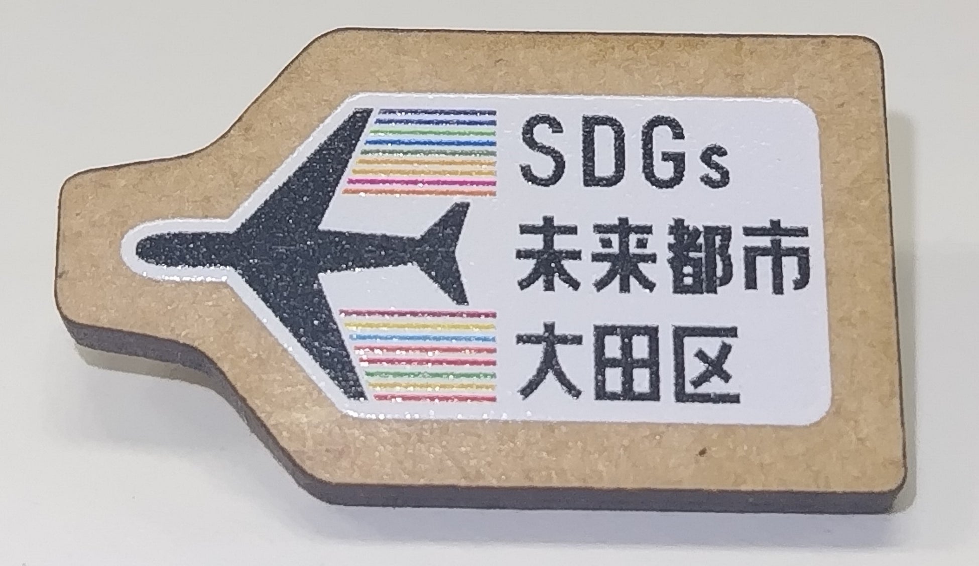 SDGsのさらなる普及啓発のためのツールとして大田区オリジナルSDGsロゴマーク入りバッジを作成しました。まずは区職員に配布し、積極的にPRしていくとともに、様々な場所でSDGsを啓発し実践行動につなげていきます。また、今後、多くの皆様にご利用いただけるよう一般販売していく予定です。