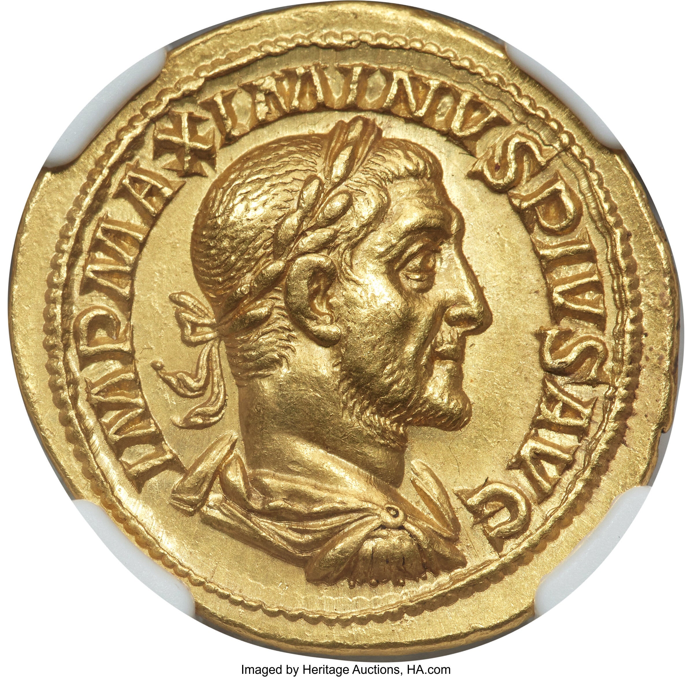 さらに本オークションには、PCGSによって鑑定された最高グレードのイギリスコイン「アン女王5ギニー金貨1709年 PCGS MS61」も含まれています。これほどに希少なコインがとても良い状態で保存されていることはほとんどありません。古代コインの注目アイテムはNGCによって鑑定された「マクシミヌス1世(AD 235-238)アウレウス金貨(21mm、6.56gm、7h)NGC Choice XF★5/5-3/5 Brushed」です。市場に出てくる頻度も少なく、ここ20年間で5枚目となります。これらの他にも非常に珍しいコインが多数出品されています。