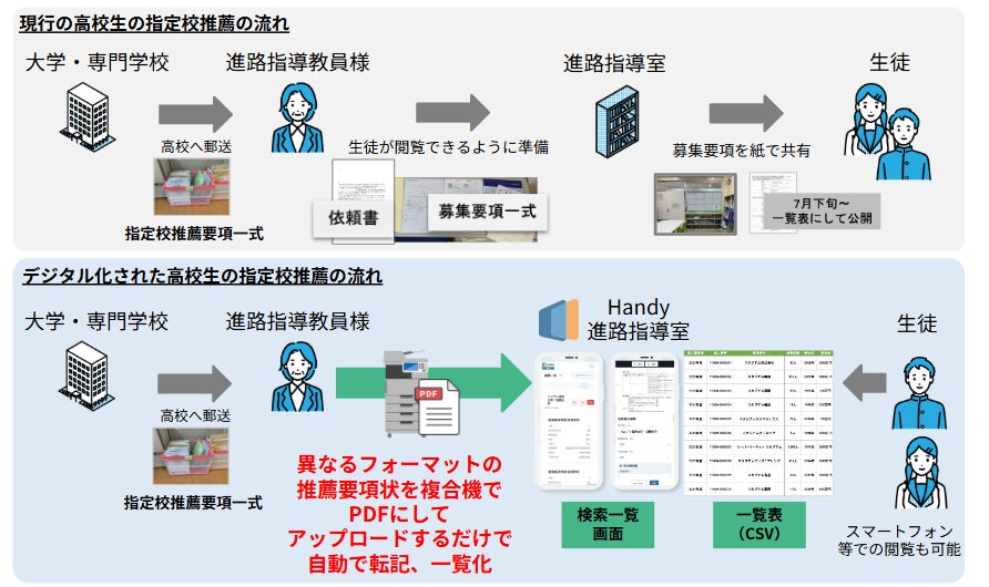 高校生の就職活動の解禁が直前に迫り、大学からの指定校推薦要項も届き始めるこの時期。進路指導にあたる教員の業務負担はさらに増加傾向にあるなか、費用をかけずに導入でき、業務負担を軽減する一助となるソリューションとして、ぜひ当社ブースにお立ち寄りください。