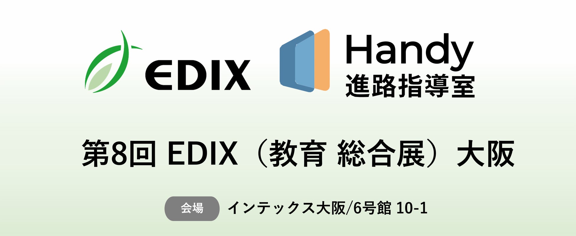 さらに、2025年6月11日(水)〜6月13日(金)にインテックス大阪で開催されるEDIX(教育 総合展)大阪へ出展いたします。会場では、「無料」で使える求人票管理システム「ハンディ進路指導室 就職版」と指定校推薦要項の管理システム「ハンディ進路指導室 進学版」の実際のデモ画面を操作・ご覧いただけます。
