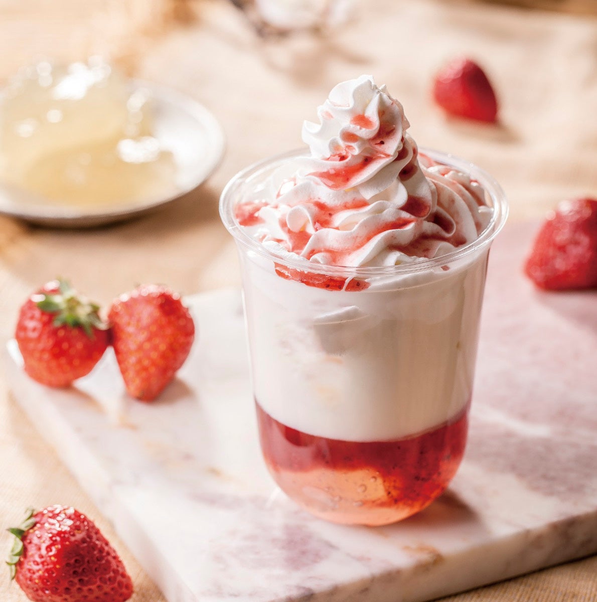 このドリンクは、季節感あふれる新鮮なイチゴのジューシーで爽やかな味わいを、六雁特製の生わらび餅の滑らかで優しい口溶けと絶妙に組み合わせています。イチゴの明るい甘酸っぱさが、生わらび餅の繊細な甘さを引き立て、生わらび餅を大切にしながらも新しい感覚を刺激する、味わい深い一杯に仕上げました。