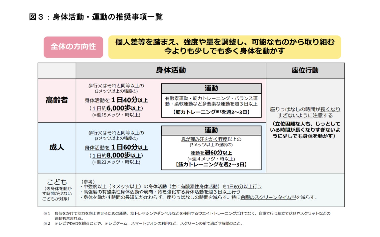 厚生労働省における「身体活動・運動の推奨事項」