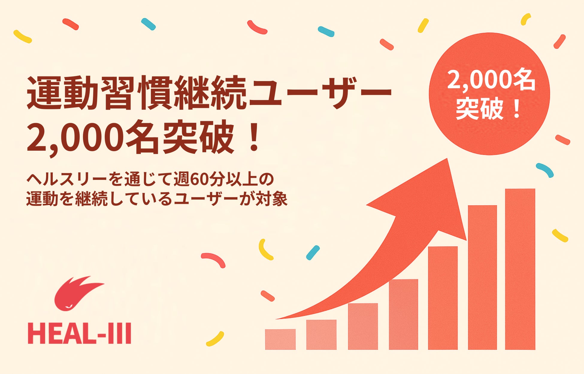 運動習慣の継続をサポートするヘルスケアゲーム「HEALTHREE」運動習慣継続ユーザーが2,000人を突破!