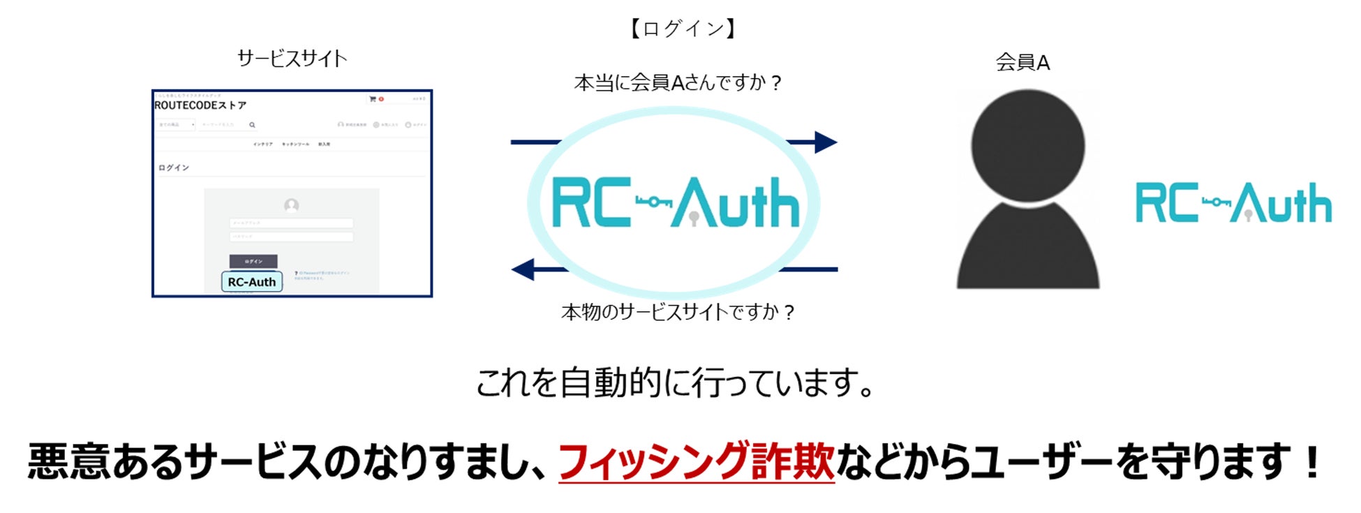 ROUTE PAYは秘密鍵・公開鍵を利用した双方向認証である「RC-Auth」を活用することで、決済時のID/パスワードレスを実現しました。ゼロ認証のため、そもそも情報を入力する必要がなく、盗まれることもないので、フィッシング詐欺を防ぐことが期待できるよりセキュアな認証技術となっています。