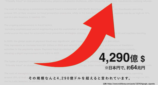近年、キャッシュレス化が進む中で、フィッシング詐欺をはじめとする不正利用の額が増えていることが現状です。手口はだんだんと巧妙になり、ユーザー自身が気を付けることに対策法は依存しており、被害は拡大する一方です。