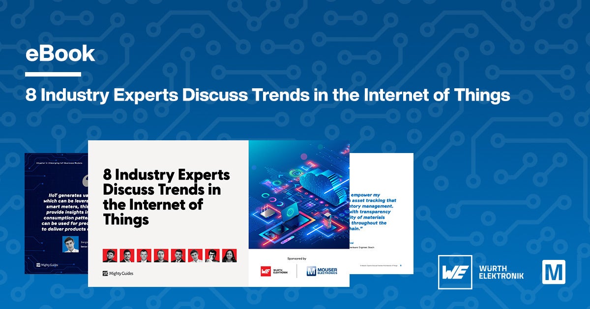 最新のeBook「8 Industry Experts Discuss Trends in the Internet of Things」では、Würth Elektronik、Bosch、Schneider Electricなどの先進企業のオピニオンリーダーが、急速に拡大するIoTデバイスの開発分野および多様な産業にもたらされる影響について考察しています。