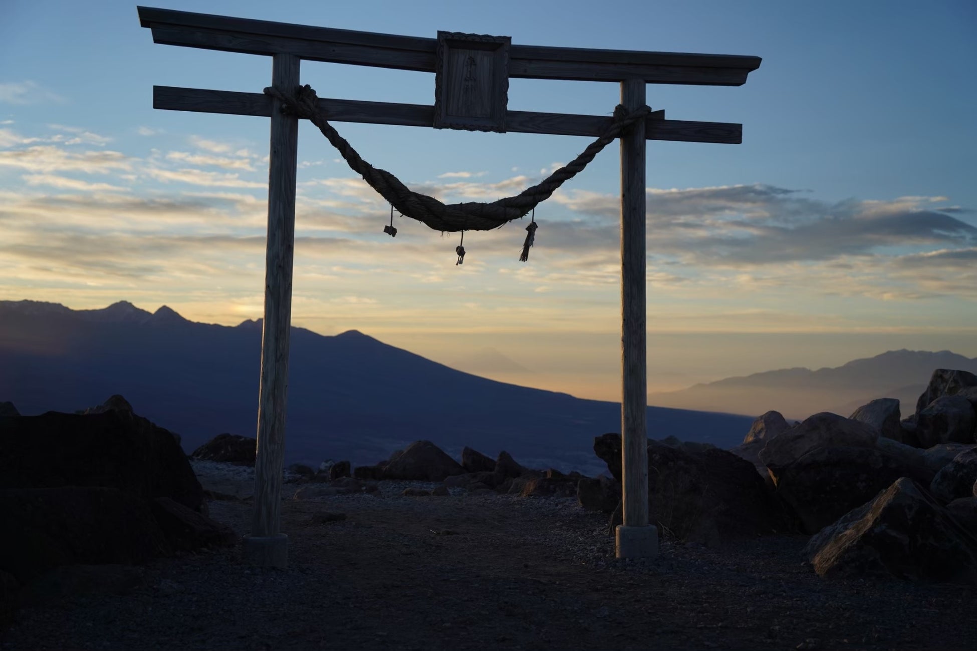 車山神社は、標高1925メートルに位置し、北アルプス、南アルプス、中央アルプス、そして富士山までを360°一望できる神聖な場所です。この地は、縄文時代から日本中の山々への感謝の祈りが捧げられてきた歴史的背景を持ち、山岳信仰が息づいています。古来より、山は神々が宿る場所として敬われ、その自然の恵みに支えられてきました。この信仰は、日本人が自然との共生を大切にし、感謝の気持ちを持ち続けてきた文化的背景を示しています。