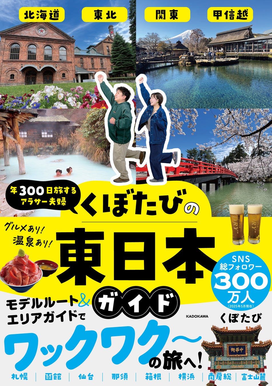 SNS総フォロワー300万人超えの旅行系クリエイター「くぼたび」を擁するたのしむこころ株式会社(本社:埼玉県さいたま市、代表:窪 雄貴)は、くぼたびの第2弾となる旅行本『年300日旅するアラサー夫婦 くぼたびの東日本ガイド』(株式会社KADOKAWA)を、2025年6月24日(火)より全国書店およびネット書店にて発売いたします。