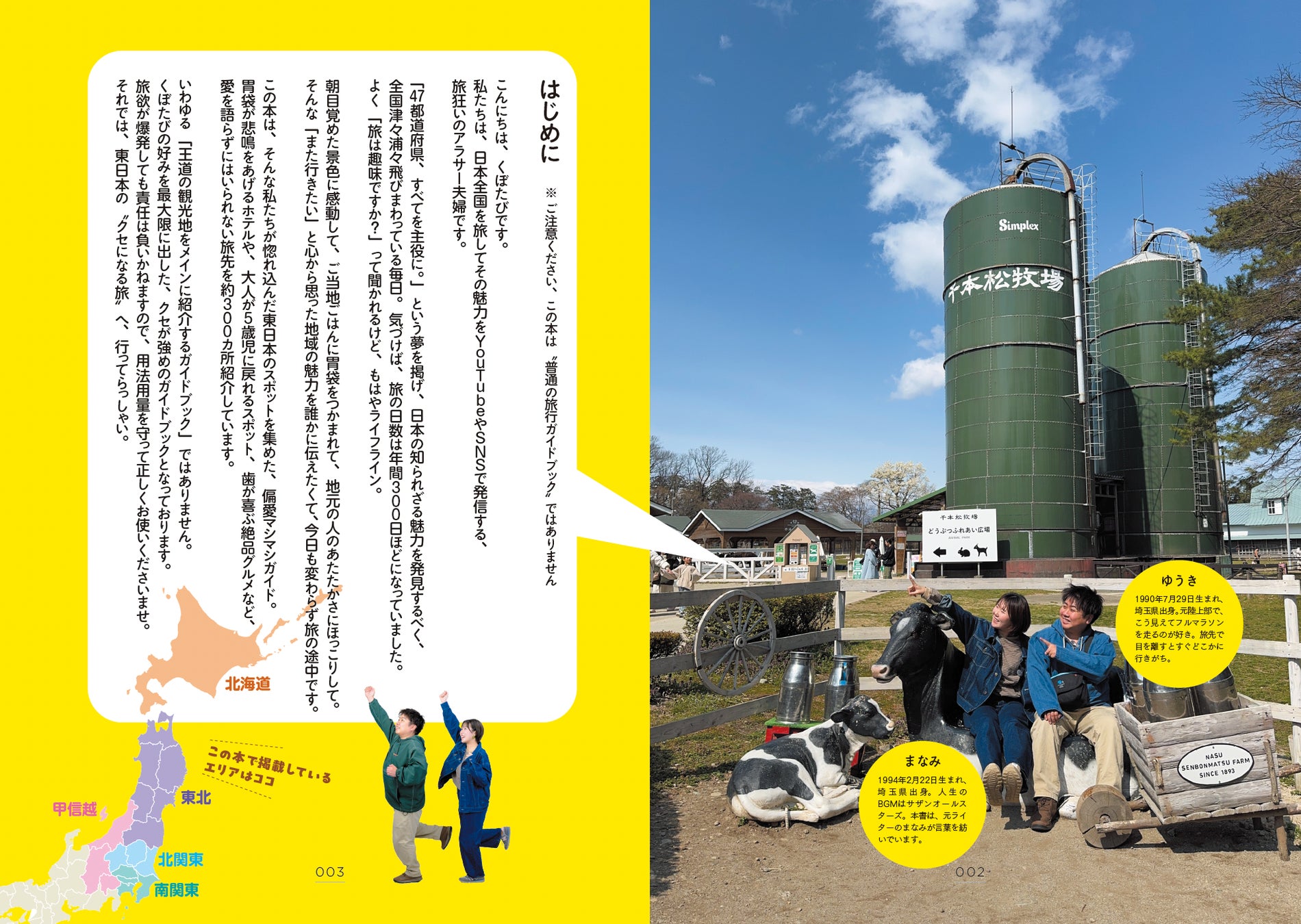 胃袋が悲鳴をあげるホテルや、大人が5歳児に戻れるスポット、歯が喜ぶ絶品グルメなど。愛を語らずにはいられない旅先を、約300カ所紹介しています。私たちが惚れこんだ東日本のスポットを集めた“偏愛マシマシガイド”、手に取っていただけるとうれしく思います。そしてこのくぼたび本を片手に、ぜひ旅を楽しんでください!